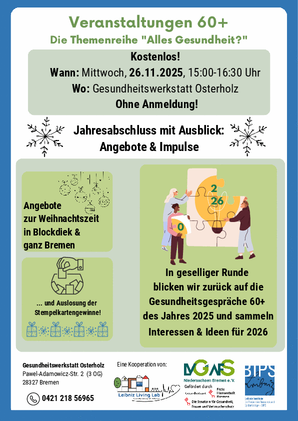 - Rückblick auf die Gesundheitsgespräche 60+ des Jahres 2025 und Ideensammlung für 2026
