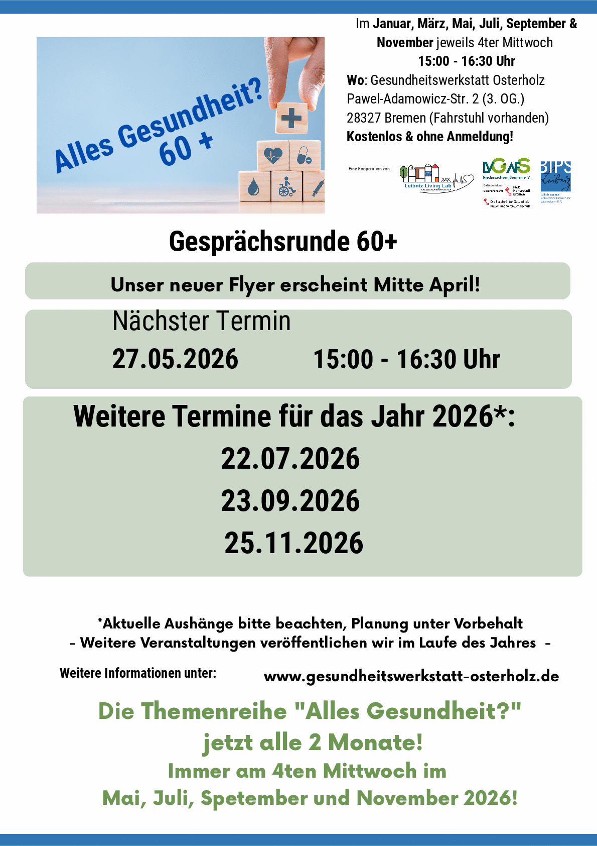 Veranstaltungen 60+ - kommende Termine 2026
